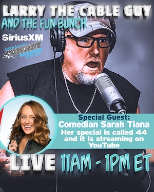 It's an all new episode of Larry the Cable Guy and The Fun Bunch on SiriusXM! Join Larry and the gang on Jeff and Larry's Comedy Roundup channel 97 for all the week's news and conversation. This week's special guest is Sarah Tiana.